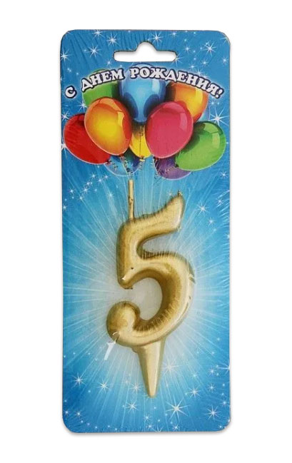 Свеча цифра Золотая 5